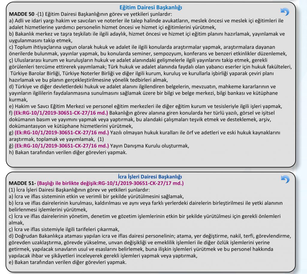 Cumhurbaşkanlığı Kararnameleriyle yenilenen Adalet Bakanlığı teşkilat yapısına dair detaylı bilgileri içeren en güncel teşkilat haritasını sizler için yayımlıyoruz.