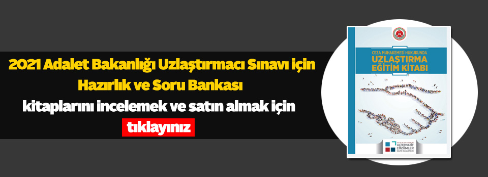 Alternatif Çözümler Daire Başkanlığı tarafından açılan 2021 Adalet Bakanlığı Uzlaştırmacı Sınavı için Hazırlık ve Soru Bankası kitaplarını incelemek ve satın almak için tıklayınız.