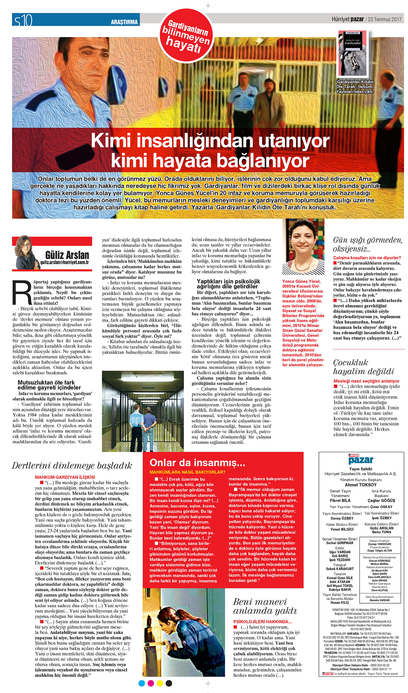 İnfaz ve koruma memurlarının hayatı, Hürriyet gazetesinde