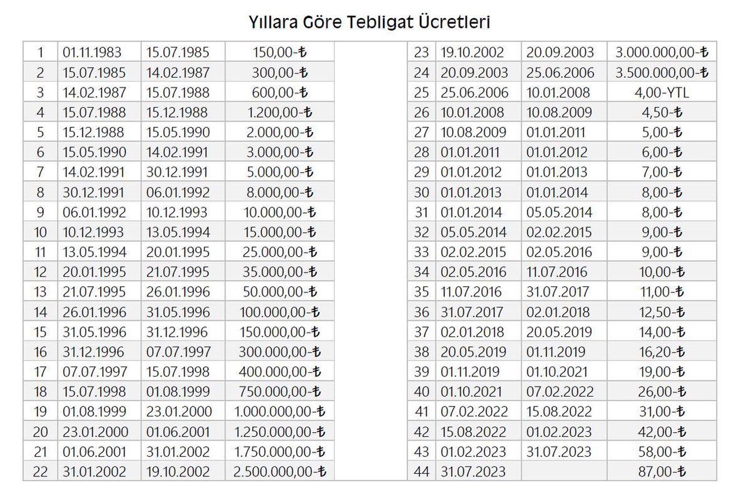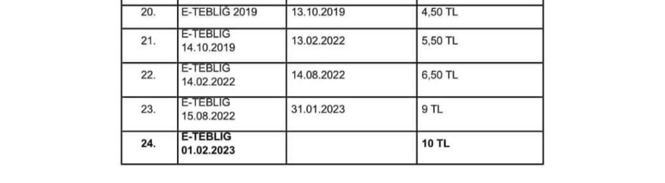Blog Yıllara Göre Tebligat Ücretleri 31 Temmuz 2023 Yıllara Göre Tebligat Ücretleri Kaynak: https://www.instagram.com/suca.suruklenen.katip Tags: ptt, tebligat, tebligat ücretleri, ücret Continue Reading Previous Sözleşmeli Personelin Kadroya Geçişi İçin Dilekçe ÖrneğiNext Adalet Bakanlığı Personel Alımı 2023 Benzer İçerikler Blog Kredi Kartı ve Kredili Mevduat Hesapları Yönünden Akdi Faiz-Temerrüt Faizi Hesaplanması 2 Aralık 2023 Blog Bu mesaja dikkat: “… Ağır Ceza Mahkemesinin … sayılı dosyanızda sanık olarak ifadenizi e-ifade uygulaması üzerinden veriniz.” ! 19 Kasım 2023 Blog Bu mesaja dikkat: “Ağır ceza dosyanız için son bildirim günüdür. Bilgi almak için kontrol ediniz.” ! 19 Kasım 2023 Bir yanıt yazın Yanıtı iptal etE-posta adresiniz yayınlanmayacak. Gerekli alanlar * ile işaretlenmişlerdirYorum * Ad * E-posta * İnternet sitesi Daha sonraki yorumlarımda kullanılması için adım, e-posta adresim ve site adresim bu tarayıcıya kaydedilsin.